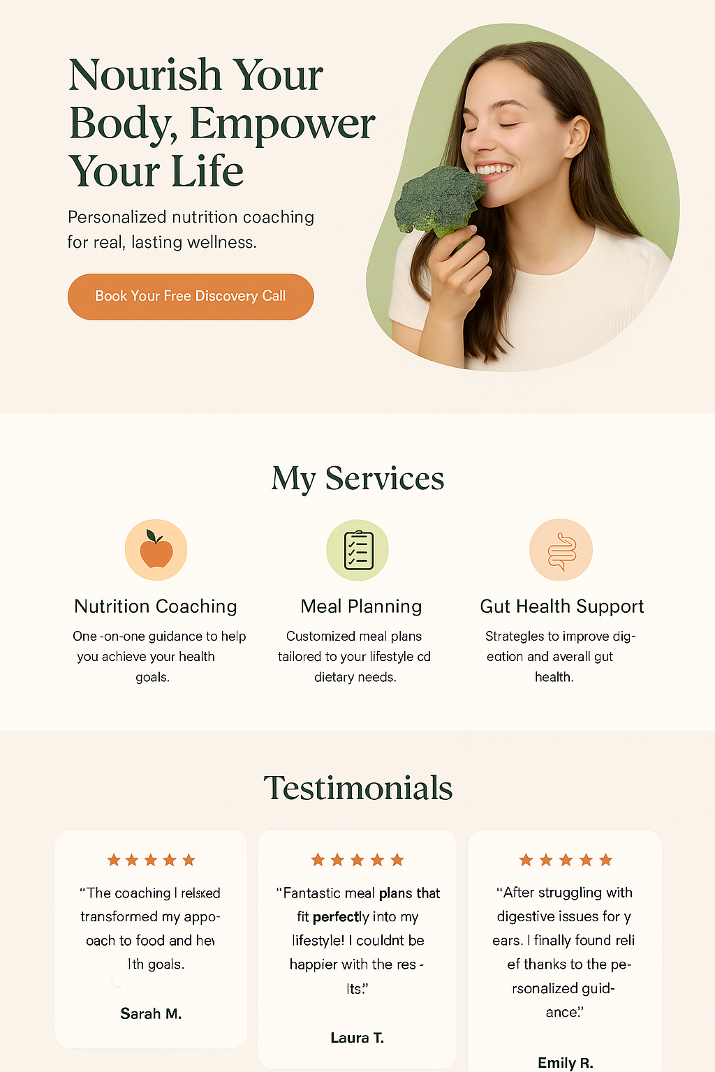 A personal trainer needed a lead-generating page for new clients. I built a custom landing page with clear calls-to-action and a contact form.
